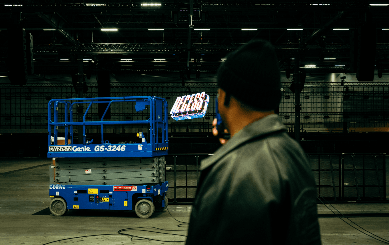 I was tasked with taking the pre-existing Recess logo and translating it into a more abstract 3D Render. This logo was used centrally throughout the course of the day on the main room screen. I also was asked to create some visuals which were influenced by london at night. These visuals were used during the headline set.